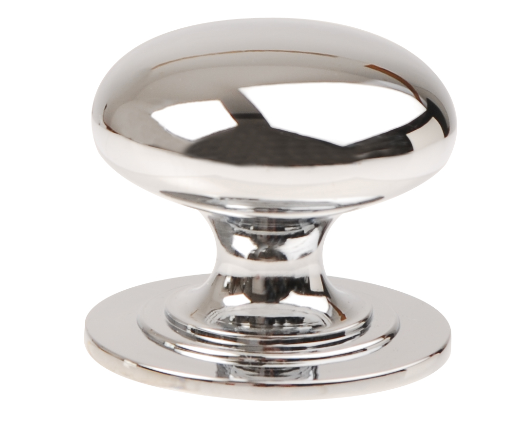 Oval knob ideal for cabinet and cupboard doors.